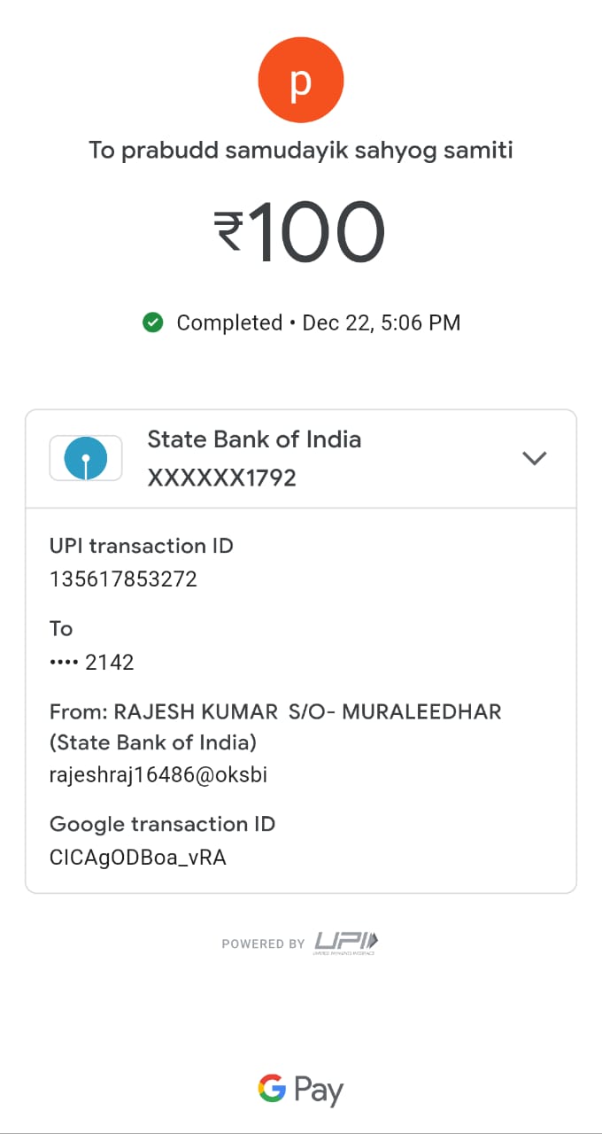 | Rajneesh Kumar vidyarthi | 533776408830 | 12/20/1982 12:00:00 AM | Sudarshan ram | 8115587748 | 9450595073 | Maya Devi (wife) | Ishant shastri | Village and post Der |