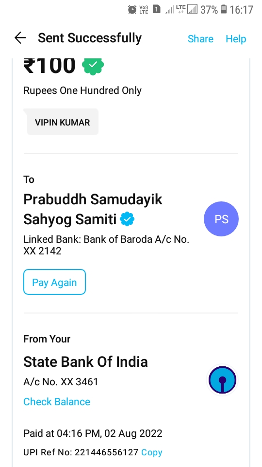 | SHER BAHADUR VERMA | A548130834312 | 8/21/1975 12:00:00 AM | LATE RAM DAS VERMA | 7607615442 | 9794049433 | REETA WIFE | ASHISH VERMA | VILL BARE GAON SURAU |
